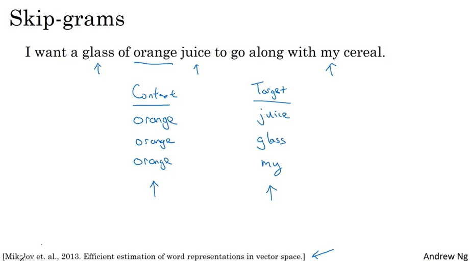 만약 윈도우 크기 6을 사용한다면(-6~orange~+6) 크기 안에서 단어를 선택할 수 있다.