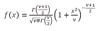 스튜던트 t 확률분포함수는 구간 (−∞,+∞)에 대해서 정의