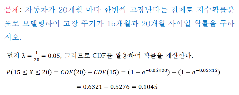 푸아송 사건 사이의 거리(시간)을 확률로 모델링하는 함수.