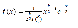 카이제곱 확률분포함수는 구간 (0,+∞)에 대해서 정의