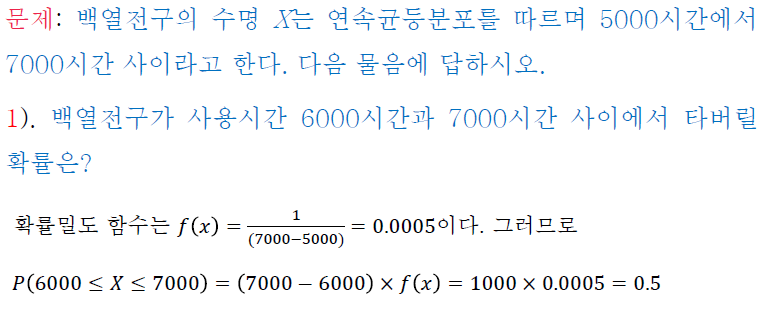 연속 균등확률분포함수는 구간 [a,b]에 대해 정의.