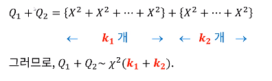 𝑄1 ~ 𝜒2(𝑑1)이고 𝑄2 ~ 𝜒2(𝑑2)일때,