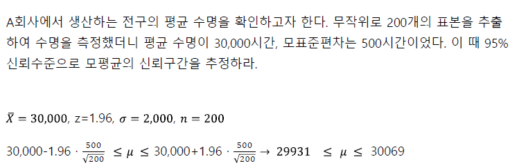 4. 구간추정 : 모집단의 표준편차를 아는 경우