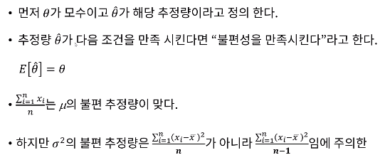 2) 불편성 : 추정량이 모수와 같아야 함.