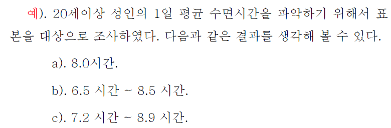 즉 조사자의 입장에서 오차를 줄이기 위해 명확한 수치를 제시하는 점추정 대신,