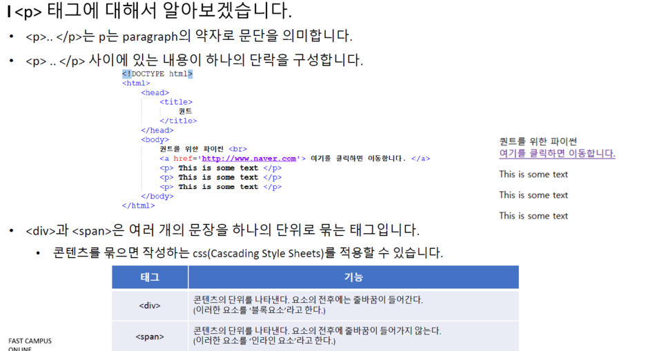 - <p> 태그