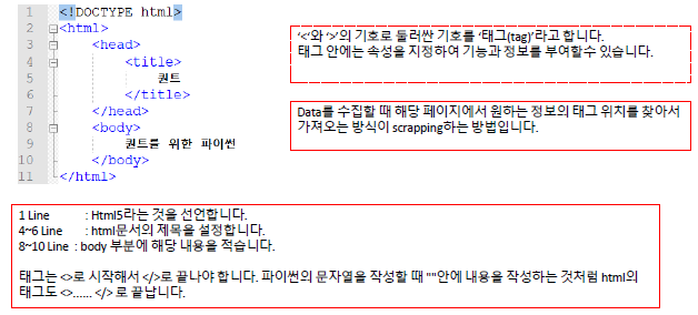 1) 웹 데이터 수집을 위한 라이브러리가 많고, 파이썬 언어의 간결성이 더해져서 다른 언어에 비해 코드 양 및 시간에 대한 이점