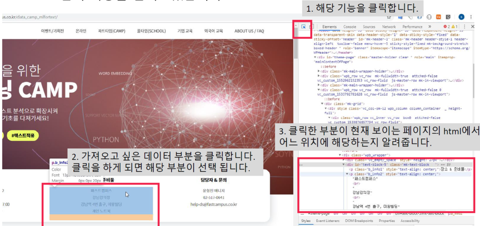 1) 클릭한 부분의 html 태그 정보를 가지고 크롤링을 할 재료로 사용