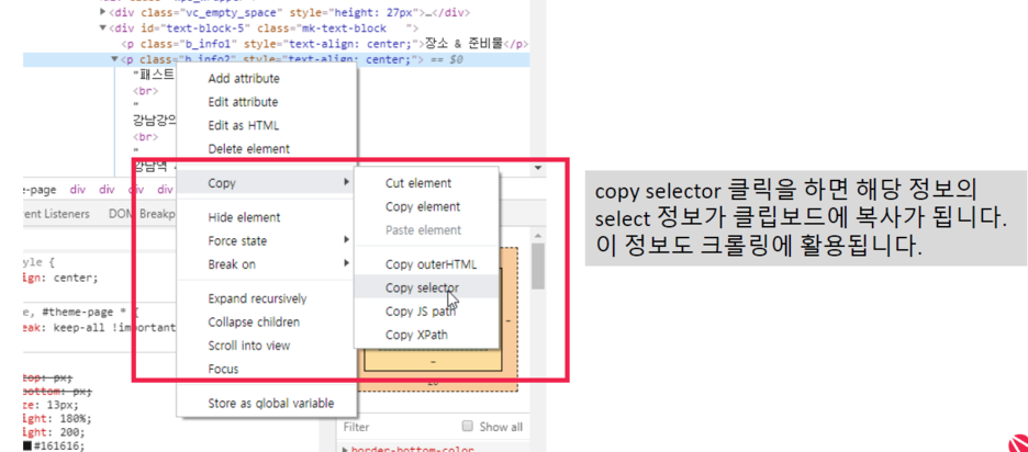 2) copy하여 크롤링에 활용