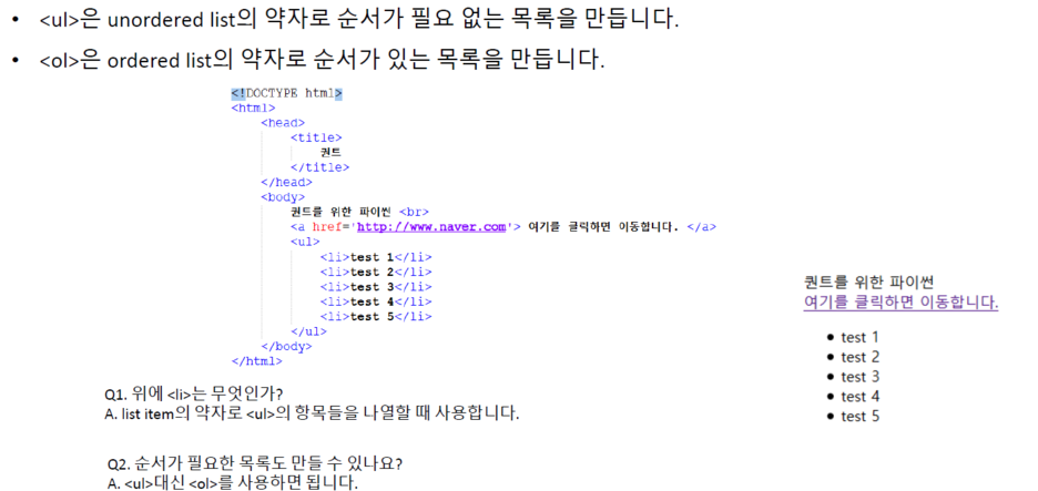 - <ul> 태그, <ol> 태그
