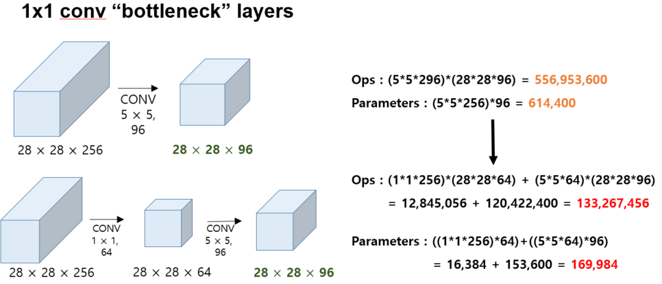 더 깊고, 넓은 네트워크를 형성하기 위해, 효율성(연산비용 감소)을 가져야만 했다.