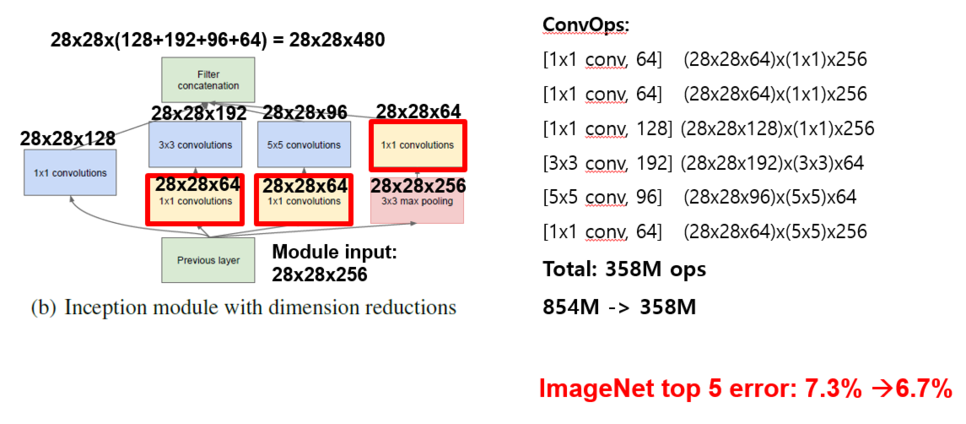 2) inception modeul : 1x1 conv "bottleneck" layers 사용
