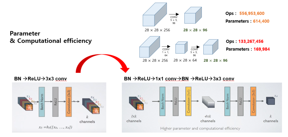 2) Densenet에 Bottleneck layers를 적용