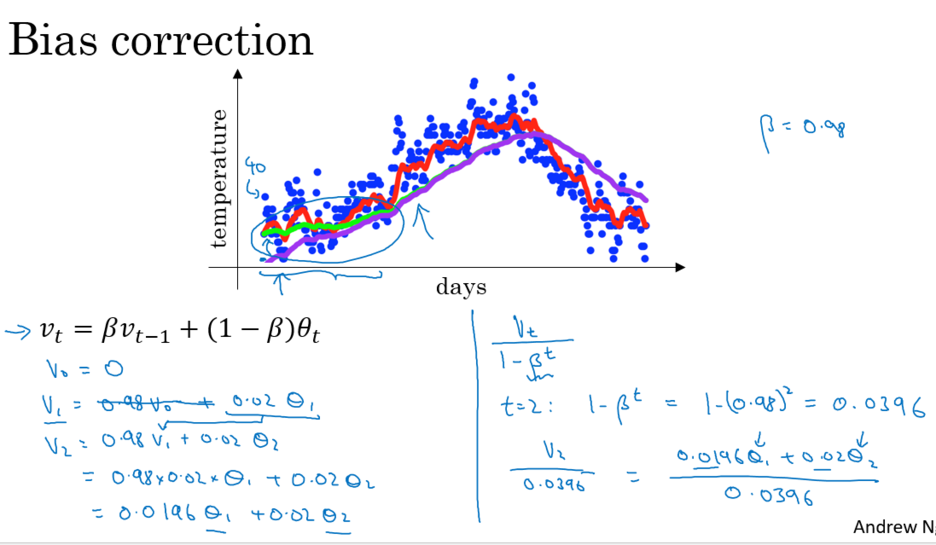 3). Bias correction in exponentially weighted averages