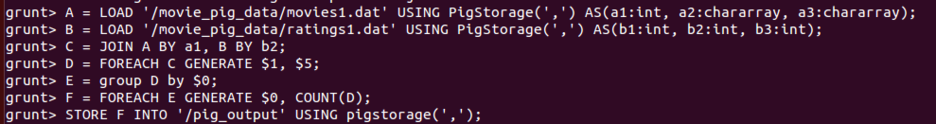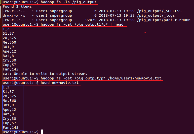 21. hadoop fs -get /pig_output/p* /home/user1/newmovie.txt
