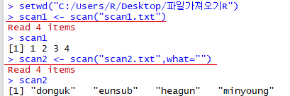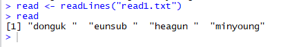- header=T로 파일에 있는 값을 제목으로 설정한다. 즉 v1, v2, v3, v4 등의 임시 제목이 생기지 않는다.