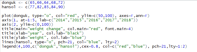 - axes=F, ann=F로 추후에 x축, y축을 계속 추가한다는 것을 알 수 있다.