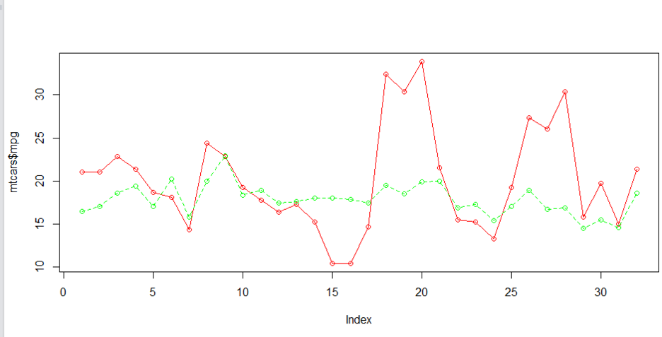plot(mtcars$mpg,type="o", col="red")