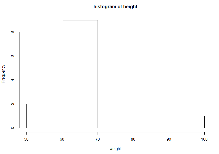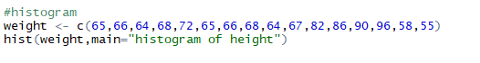 hist(weight,main="histogram of height")