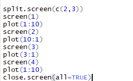 - close.screen(all=TRUE)는 설정을 초기화 한다.