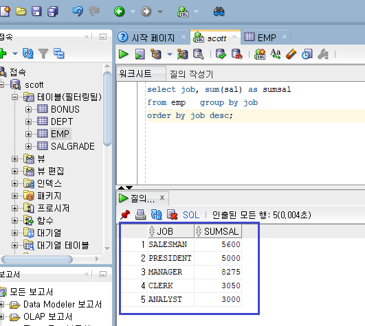 sql <- "select job, sum(sal) as sumsal