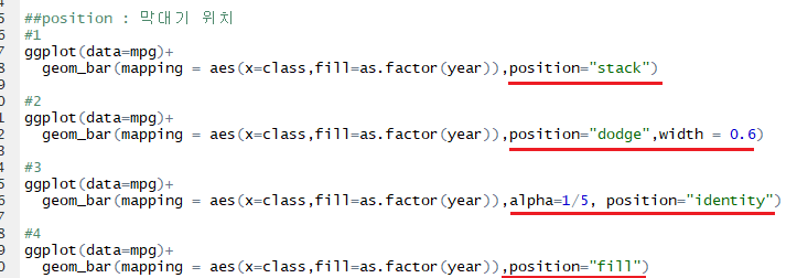 3. geom_bar() 인자
