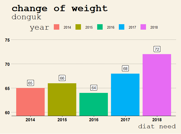 - 본인은 ggtheme패키지 안에 theme_wsj() 함수를 사용하여 이쁘게 그래프를 만들었다.