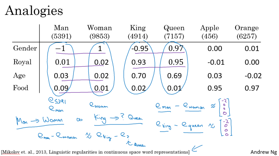 이 계산은 둘 단어들의 차이(남자-여자)(왕-?)가 서로 같다(=)라는 것을 극대화함