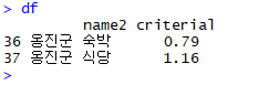 그래서 paste0() 함수를 사용하여 경도:위도 양식의 열을 추가하였다.