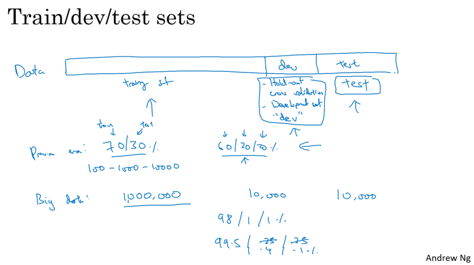 1) 데이터 양에 따른 train, dev(validaton), test 특징