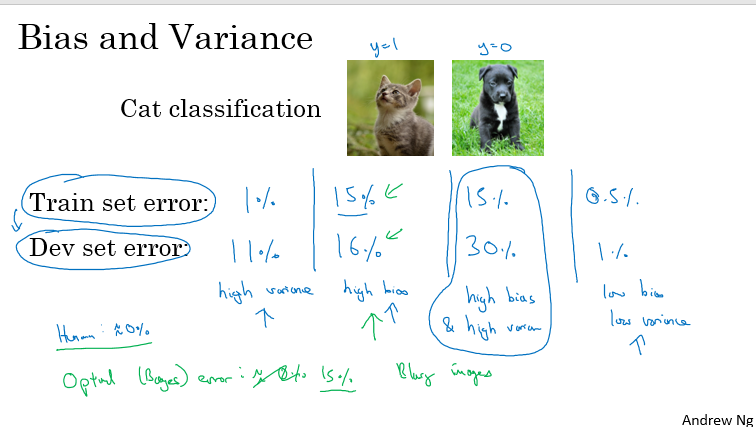 train 0.5% 오차, dev 1% 오차 -> low bias, low variance