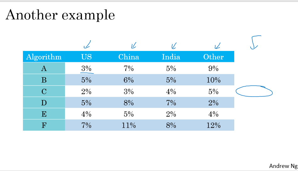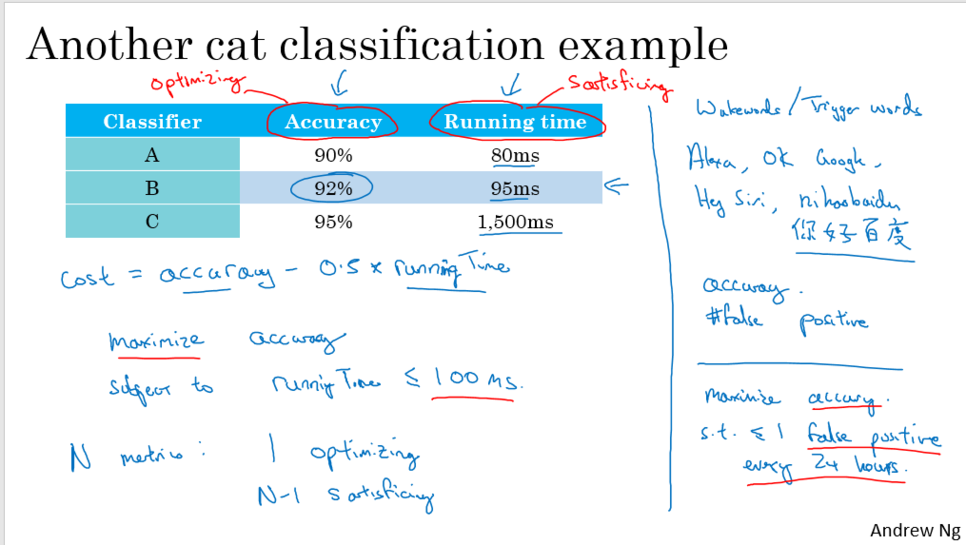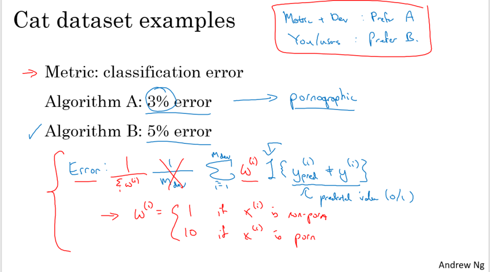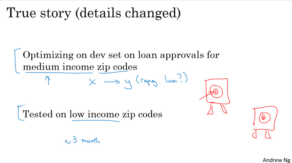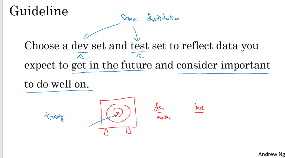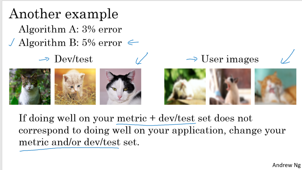 dev set와 평가 매트릭 지표를 세팅하는 것은 팀이 목표를 지향할 수 있도록 방향성을 제시하는 것과 같다.