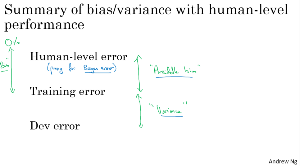 - 인간레벨오류를 Bayes error의 추정치로 생각