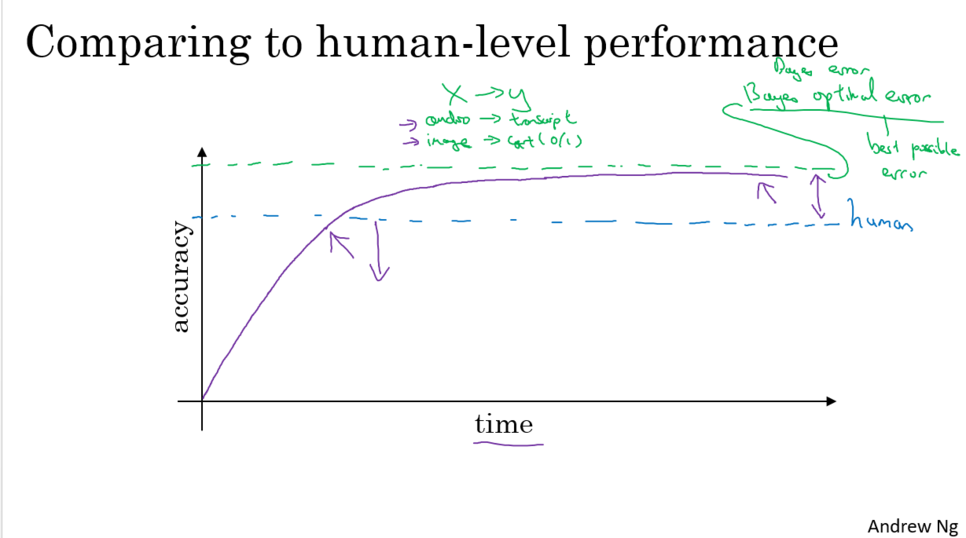 => 인간라벨성능과 가까운 선상에 있는 경우, 바이어스와 편차효과를 제거하기가 굉장히 더 어렵.