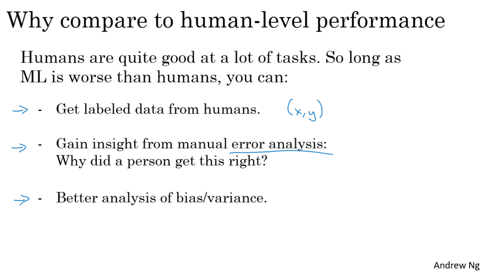 1) 인간레벨성능의 추정치를 알면 Bayes error의 예상 값을 알 수 있음